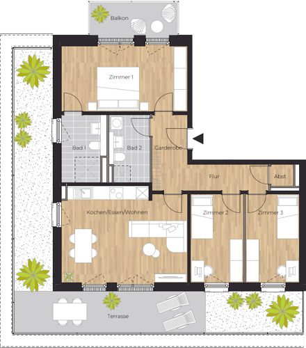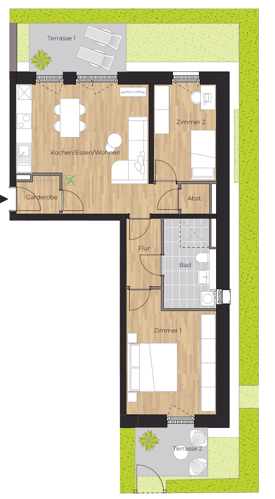 - Komfortable Gartenwohnungen mit Terrasse und Privatgarten